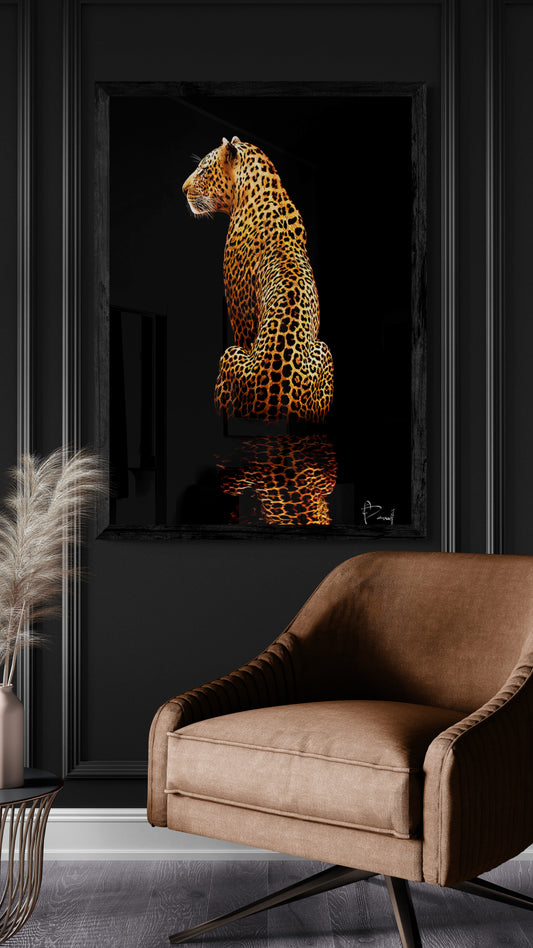 Deep Reflection – Big Cat Wall Art Poster Print, Modern Contemporary Leopard Design, Available Framed