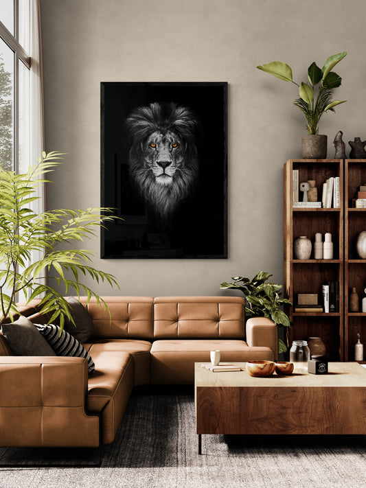 Born of Flame – Big Cat Wall Art Poster Print, Modern Contemporary Lion Design, Available Framed