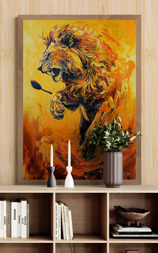Fireborn Majesty – Big Cat Wall Art Poster Print, Modern Vibrant Lion Design, Available Framed