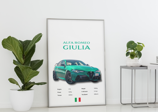 Alfa Romeo Giulia Car Poster – Dream Sports Car Wall Art, Prints & Framed Artwork