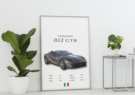 Ferrari 812 GTS Car Poster – Dream Sports Car Wall Art, Prints & Framed Artwork