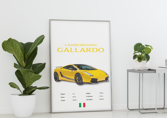 Lamborghini Gallardo Car Poster – Dream Sports Car Wall Art, Prints & Framed Artwork