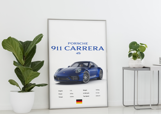 Porsche 911 Carrera 4S Car Poster – Dream Sports Car Wall Art, Prints & Framed Artwork