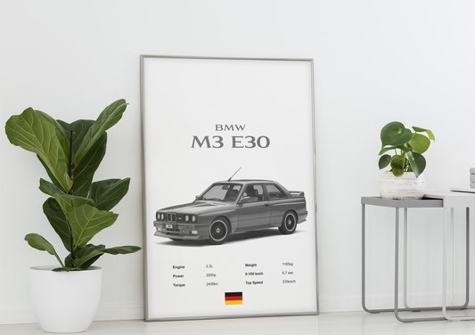 BMW M3 Е30 Car Poster – Dream Sports Car Wall Art, Prints & Framed Artwork