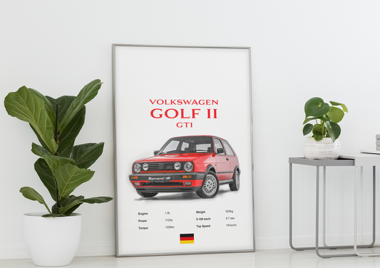 Volkswagen Golf Mk2 GTI Car Poster – Dream Sports Car Wall Art, Prints & Framed Artwork