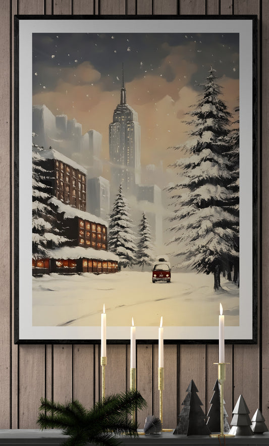 Driving Home For Christmas - New York Christmas Poster Print, City Winter Scene Wall Art, Available Framed
