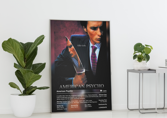 American Psycho Movie Poster - Christian Bale 2000 Psychological Horror Film Poster Print