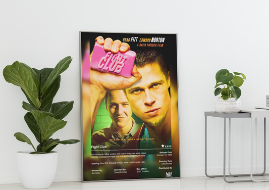 • Fight Club Movie Poster - Brad Pitt Edward Norton 1999 Psychological Drama Film Poster Print