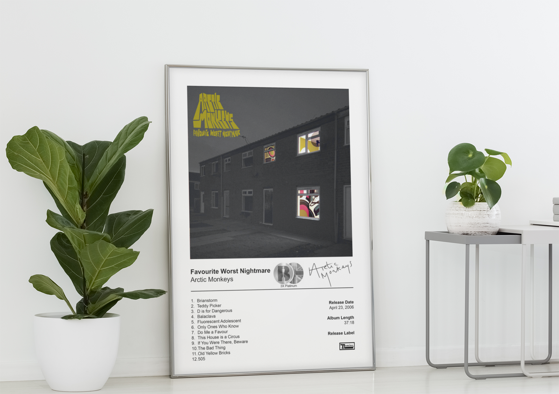 Bring the explosive sound of a fan-favorite era into your space with this striking Arctic Monkeys Favourite Worst Nightmare poster. Featuring the angular, high-contrast album cover artwork, this high-quality Arctic Monkeys poster captures the restless energy and sonic evolution that followed their iconic debut.