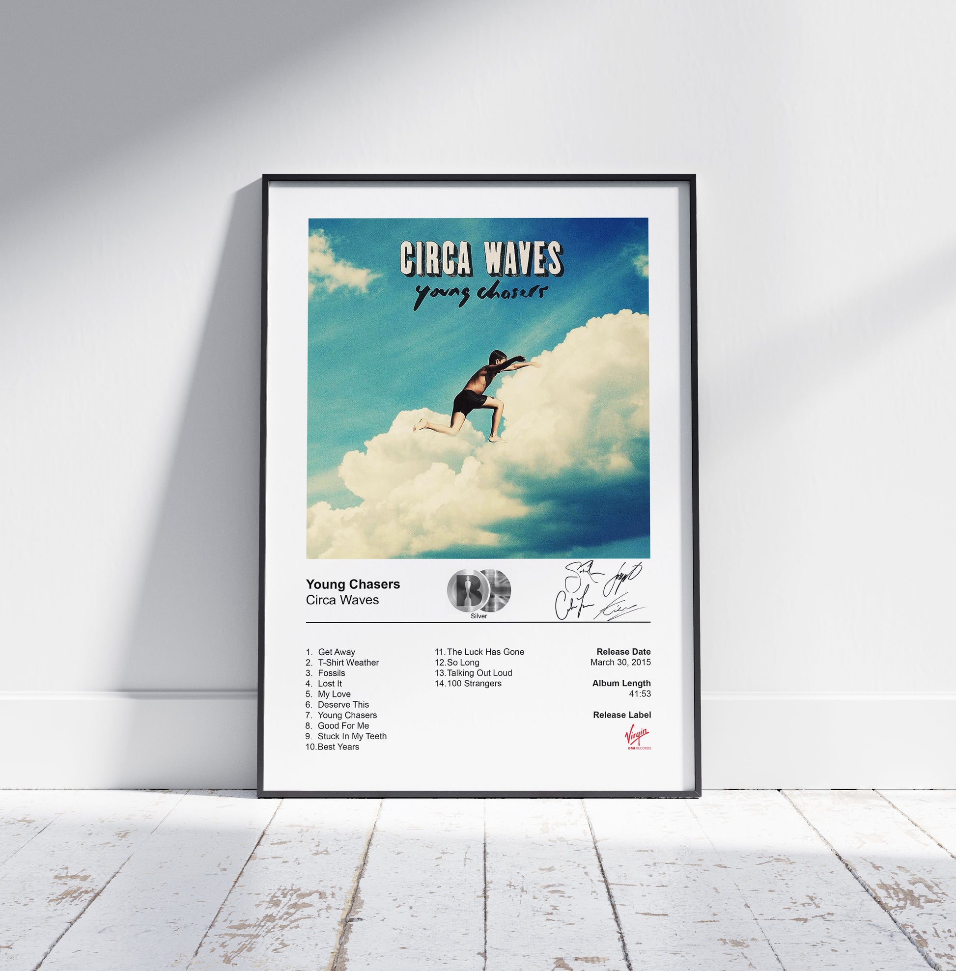 Celebrate the breakthrough indie rock energy of Circa Waves with this Young Chasers album cover poster. Featuring the dynamic black-and-white artwork from their 2015 debut, this high-quality Circa Waves poster captures the raw, guitar-driven spirit that defined a new wave of British indie. It’s a nostalgic nod to standout tracks like “T-Shirt Weather,” “Stuck in My Teeth,” and “Fossils” that soundtracked a generation of festival summers.