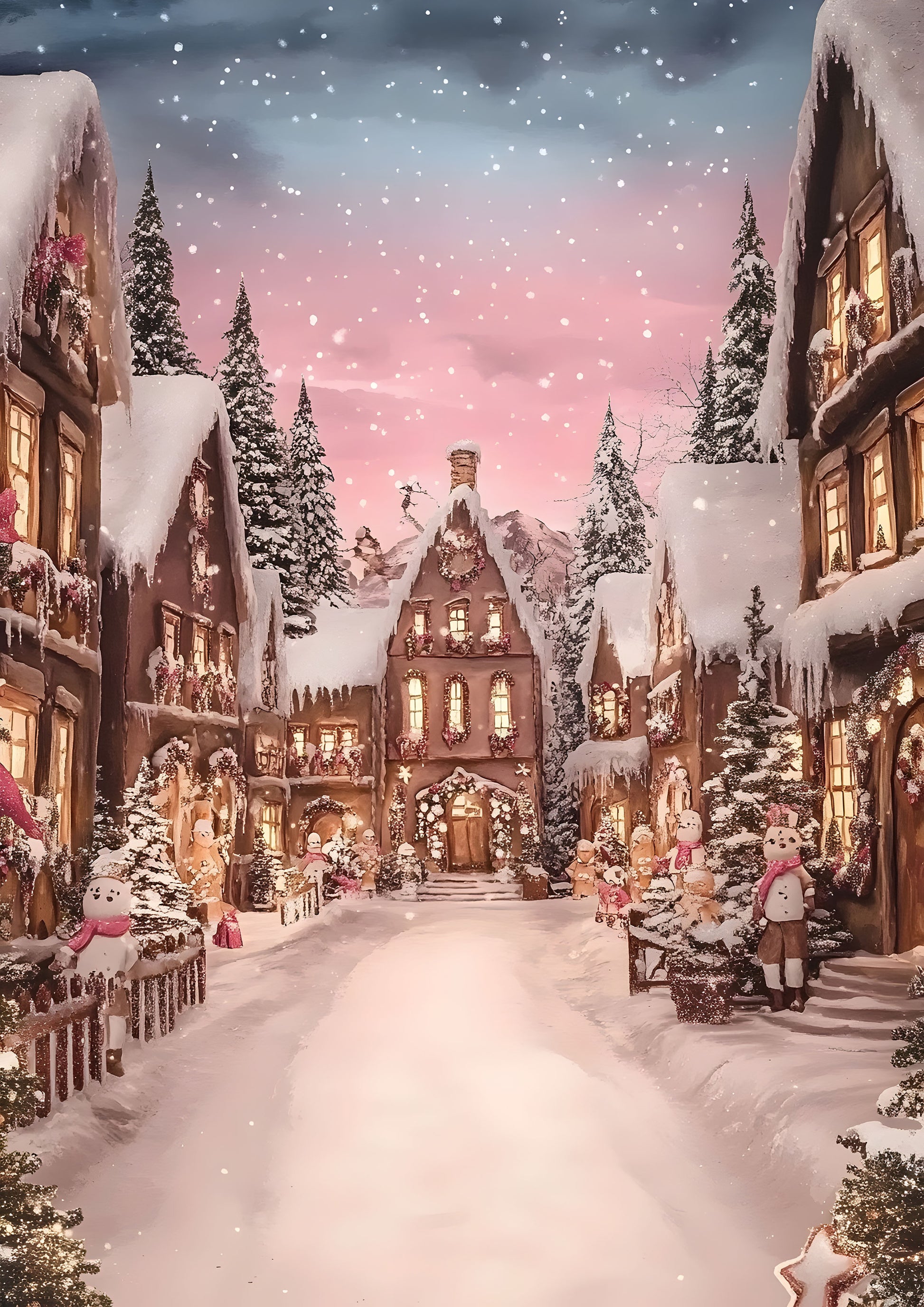 Bring the charm of a storybook winter scene into your home with our Enchanted Christmas Village wall art. Featuring a cosy, snow-covered village illuminated by warm golden windows and a magical pink-blue twilight sky, this artwork captures the heart of Christmas nostalgia. Every detail, from the twinkling lights to the falling snow, creates a peaceful, festive atmosphere perfect for holiday decorating.