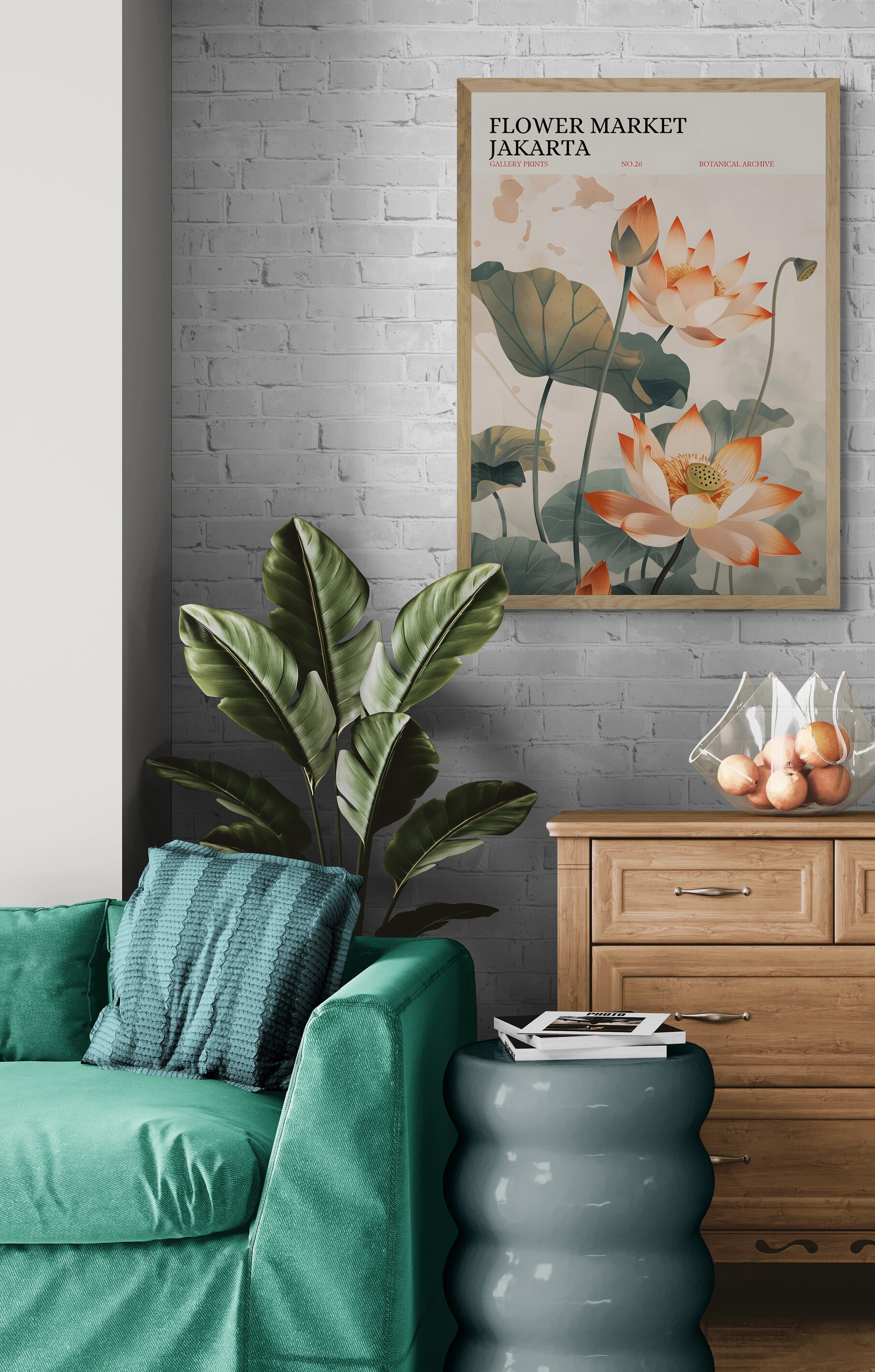 Flower Market Jakarta - Colourful Vintage Botanical Wall Art, Modern Floral Design, Available Framed