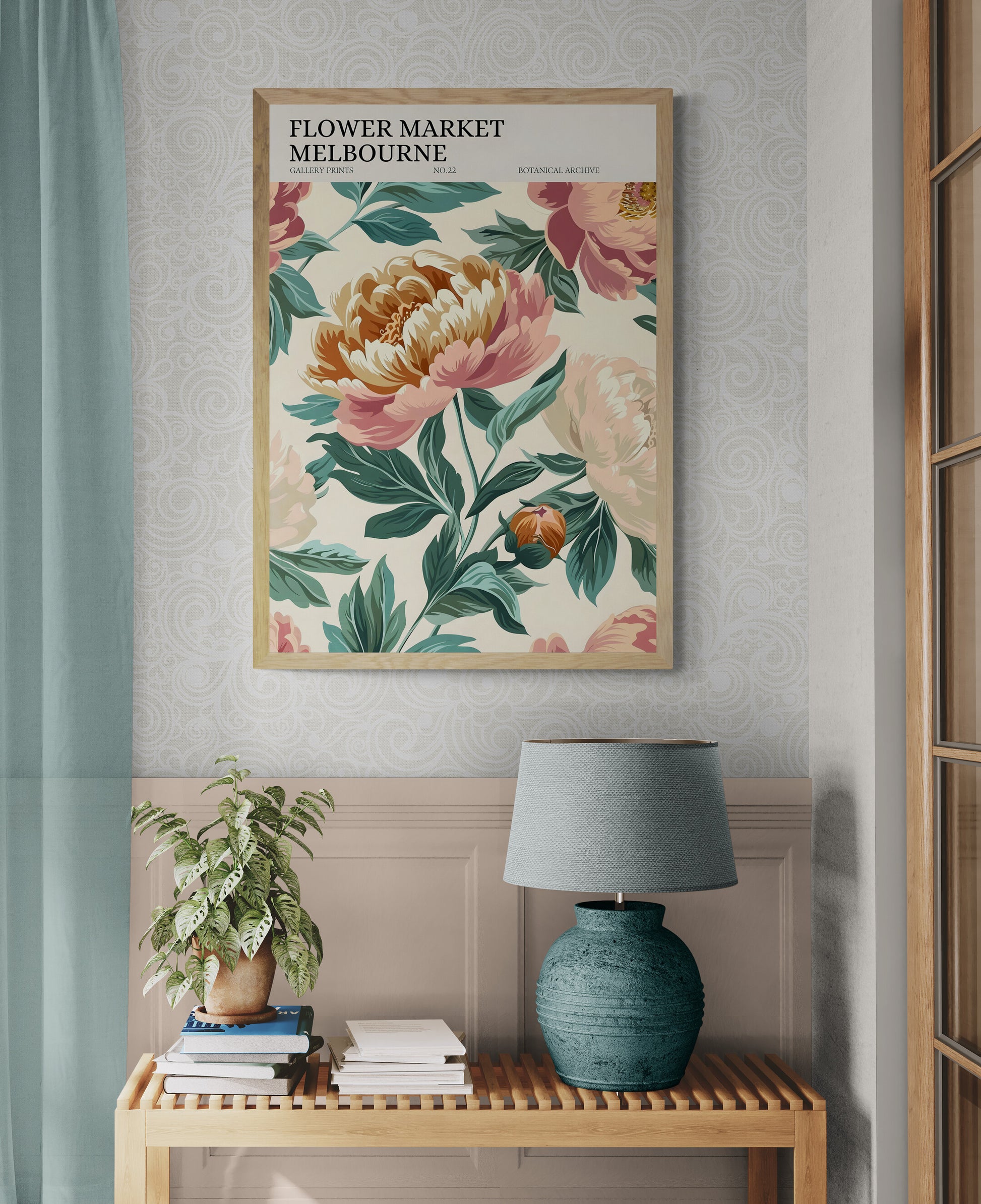 Immerse your space in the lush beauty and timeless elegance of Flower Market Melbourne. This exquisite botanical print, part of our distinguished Flower Market collection, captures the opulent charm of a Melbourne, reinterpreted with a contemporary sensibility.