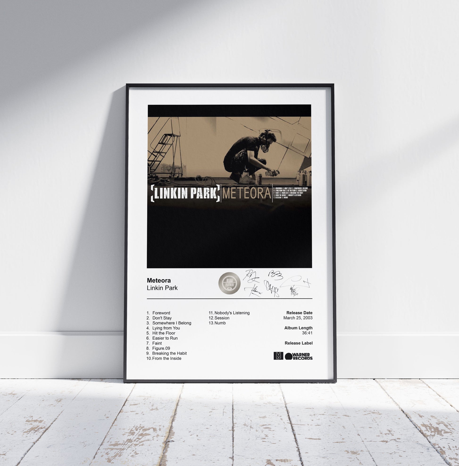 With unforgettable tracks like Numb, Somewhere I Belong, and Breaking the Habit, this Meteora album cover poster perfectly reflects the intensity and introspection that defined Linkin Park’s sound. Available as both a premium framed Linkin Park poster and an unframed print, it’s a striking addition to any fan’s wall, celebrating the timeless impact of one of rock’s greatest bands.