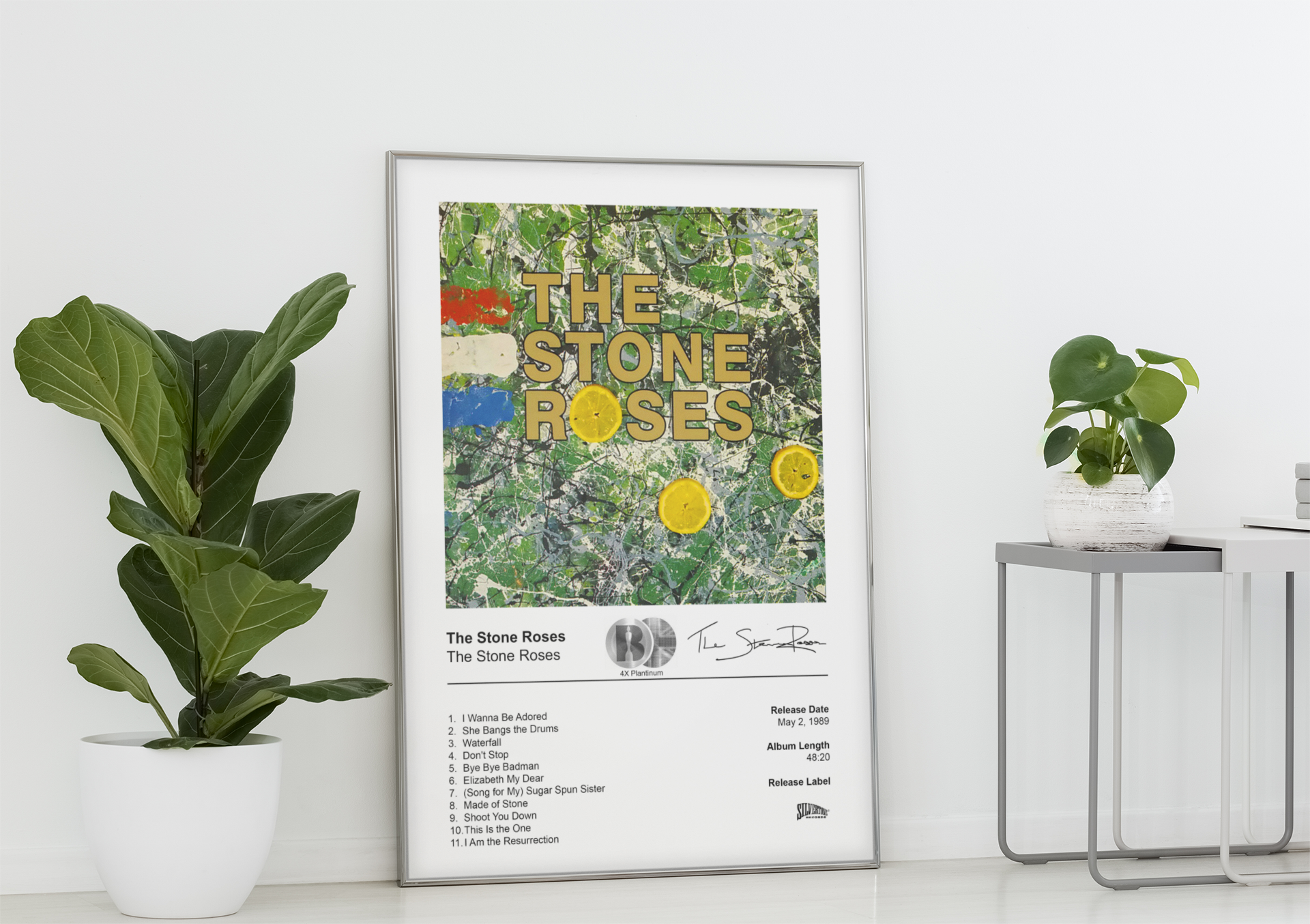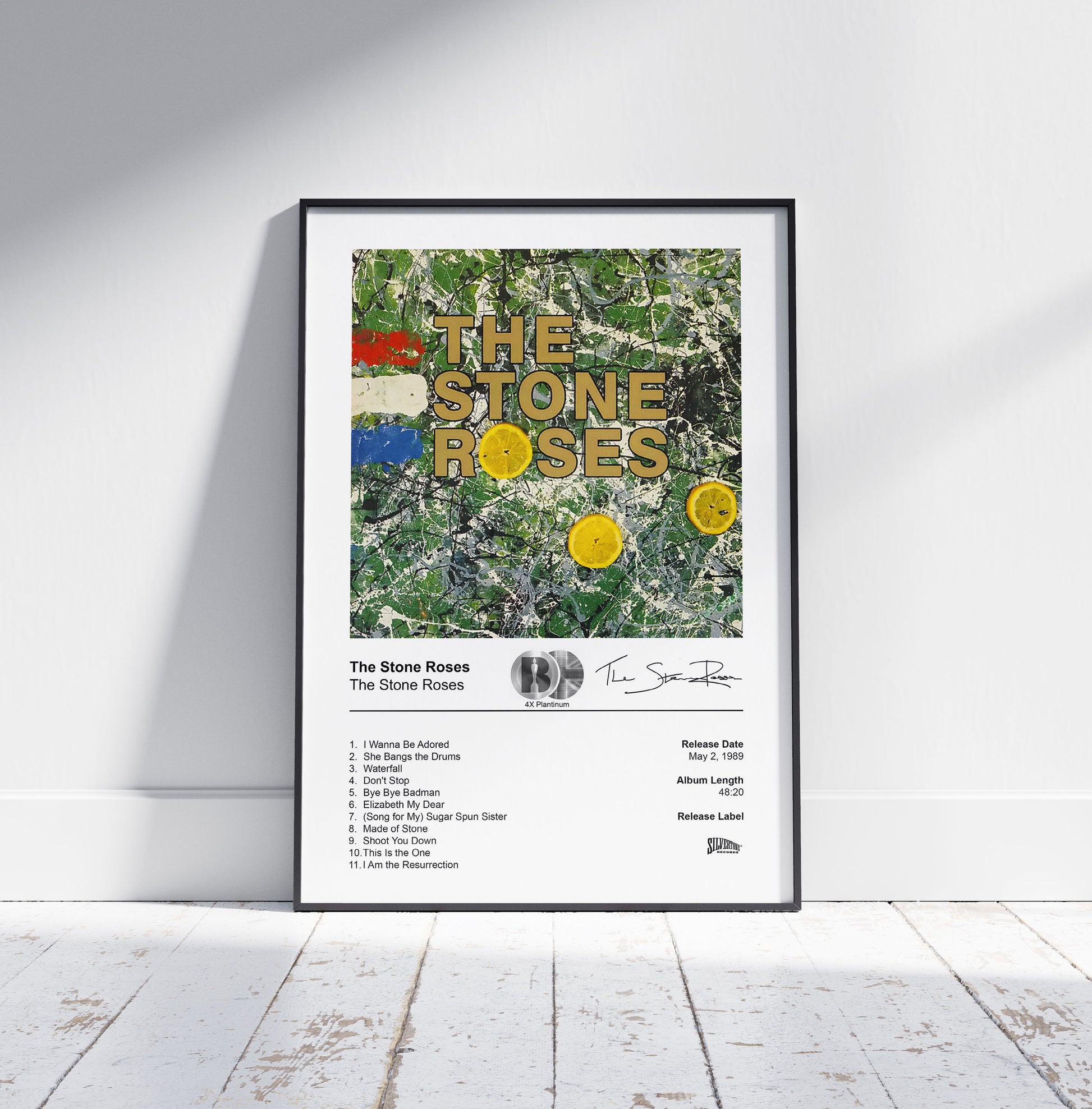 Celebrate one of the most iconic debuts in British music history with this stunning The Stone Roses album poster. Featuring the instantly recognizable Jackson Pollock-inspired lemon-splattered artwork from their legendary 1989 self-titled release, this high-quality The Stone Roses poster captures the spirit of the Madchester era and the band’s timeless influence.