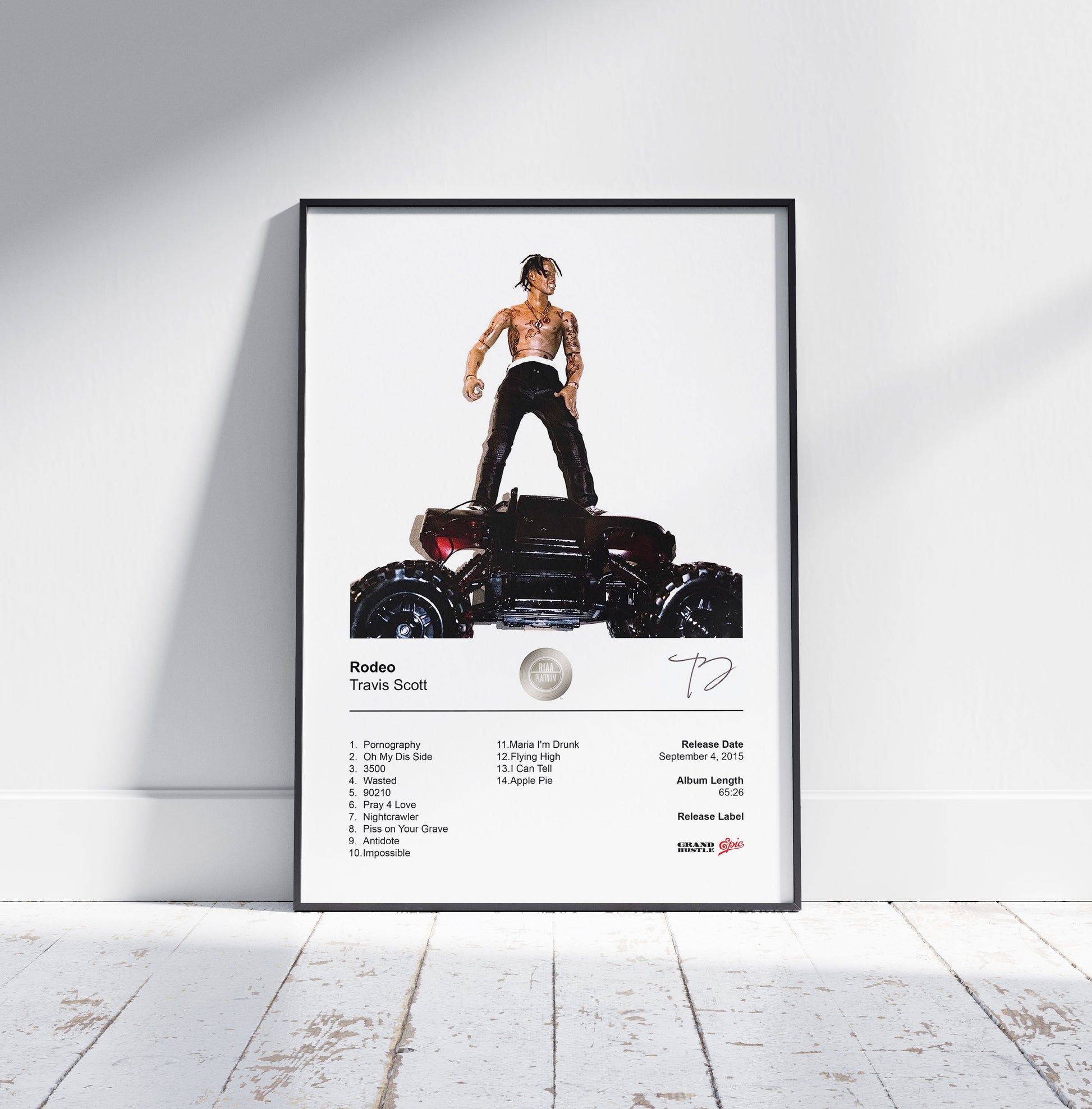 A perfect addition to any fan’s collection, this Rodeo album cover poster brings the chaos, creativity, and confidence of Travis Scott’s early era to your wall. Available unframed or as a premium framed Travis Scott poster — ready to elevate any space with unapologetic attitude and iconic sound.